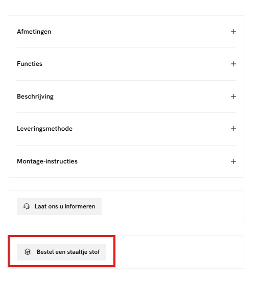 Wanneer u op de pagina van de bank staat die u interesseert, hoeft u alleen maar op het tabblad “een stofstaal bestellen” te klikken om alle beschikbare kleuren te bekijken.
